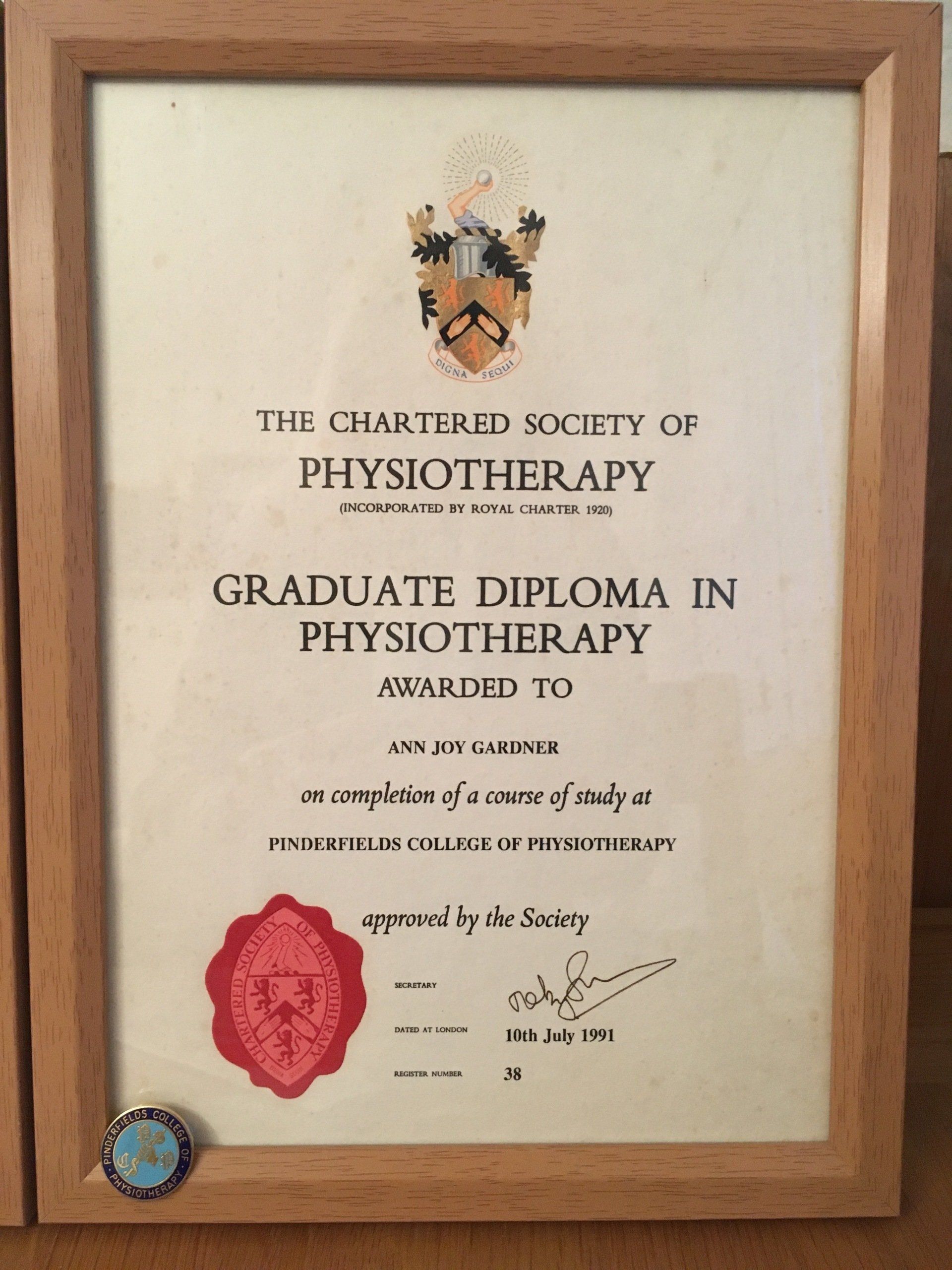 Ann Gardner qualified as a Physiotherapist in 1991 from the Pinderfields College of Physiotherapy, Wakefield, West Yorkshire, and has worked ever since in a variety of NHS settings, finally specialising in adult musculoskeletal Physiotherapy. Ann is a member of the Chartered Society of Physiotherapists and the Health and Care Professions Council.